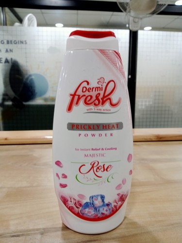 Dermifresh Fresh Rose Talcum Powder is a cooling, soothing talc that is designed to combat prickly heat, sweat, and itching during hot and humid days. Its triple-action formula is enriched with ingredients like Pudina Satva, Tankan, and Yashad Bhasma that provide instant relief from discomfort, rashes, and irritation. The absorbent powder of this talc keeps skin dry, fresh. Also, it is lightly scented with a pleasant rose fragrance all day. Ideal for both men and women, it works post-shower or after workouts to ensure comfort and confidence. Multipurpose and gentle, this talcum powder is your everyday essential for summer freshness, smooth skin, and protection against body odor.