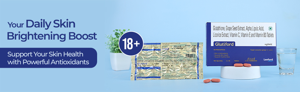 L-Glutathione in Glutiford Tablets is recognized for its antioxidant properties, and it is associated with potential skin benefits. The combination of Glutathione with Alpha Lipoic Acid is believed to enhance antioxidant properties. When combined with Licorice extract, Glutathione is believed to have potential benefits for the skin. With additional ingredients like Grapeseed extract, Vitamin C, B3, and E, the tablets are suggested to provide comprehensive antioxidant support. Simultaneously, these ingredients may contribute to collagen formation, address skin concerns in combination with others, and enhance the skin for a renewed appearance.