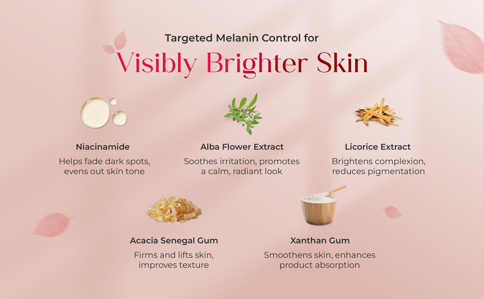 The key ingredients include niacinamide, which is known for its brightening properties, along with other skin-nourishing components that enhance skin health.
